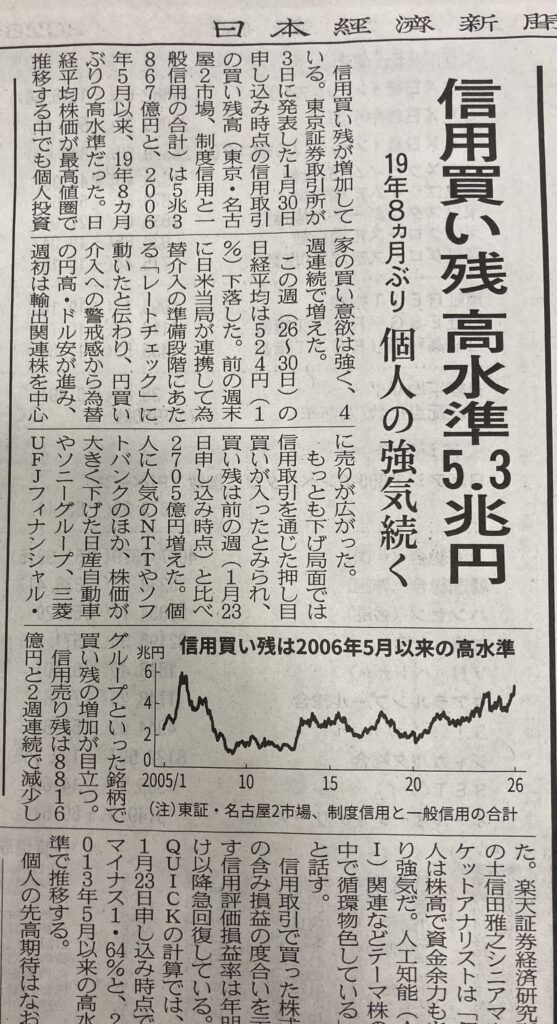 NEW! 株式の備忘録 信用買い残、高水準5.3兆円と言うが 2026年2月4日 おはようございます。これは今日の日経新聞投信2面から。備忘録入りかな。 要は、この高水準な信用買い残が、回転が効いていれば良いわけですね。 新聞によれば、日米当局が連携して、為替会議の準備段階にあたる... 1154market