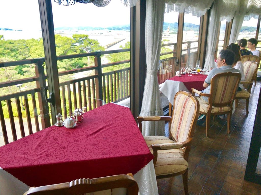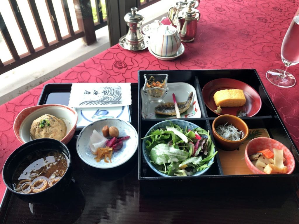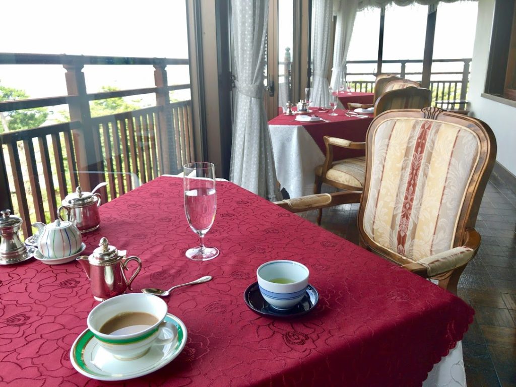朝が来た。やはりあたりを散策してお腹を空かせ。朝食を。昨日と同様、メインダイニングルームのリヴァージュだが、テラス席にしてもらった。これが正解!竹島がよく見える。