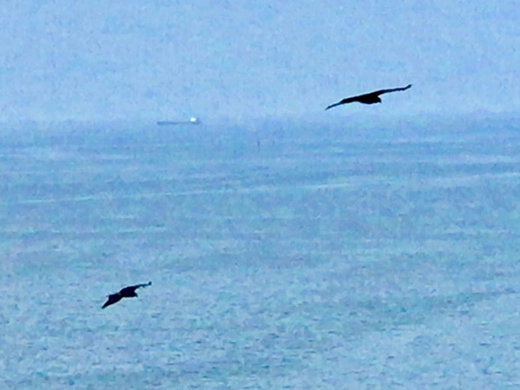 トンビが飛んでる。海の上。姿がいいな。もう少し近くに来てくれないかなぁ。