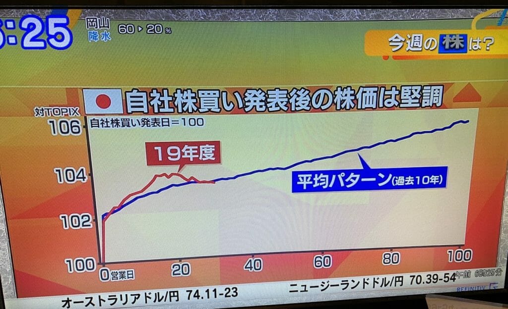 自社株買いを発表した銘柄の株価は、発表後100日を経ても堅調に推移する経験則。