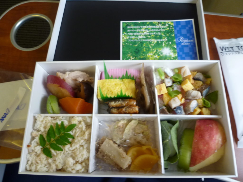 お昼の、ANAのプレミアムクラス弁当。さすがに旨しだったな。