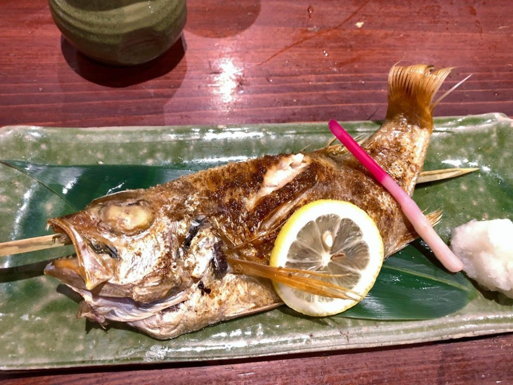 ノドグロの塩焼き。もちろん地のものと。脂が乗りまくりで、ジュクジュクと垂れて出てくるくらい。とんでもなく美味しだった。