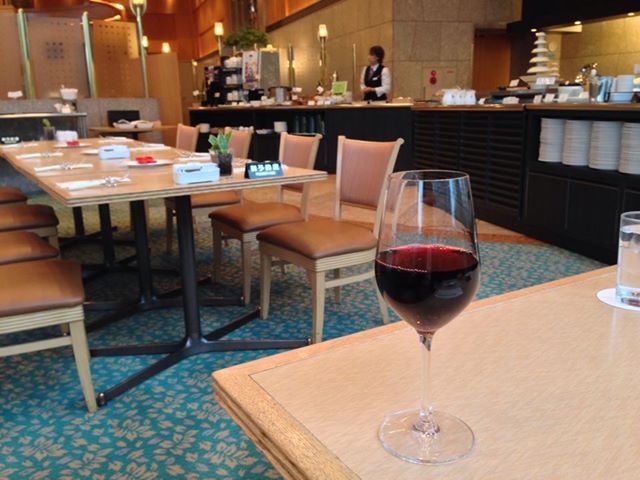 こちらはカード会員のお約束、1Fのカフェ・イン・ザ・パークで、ウェルカムドリンクの赤ワインを。