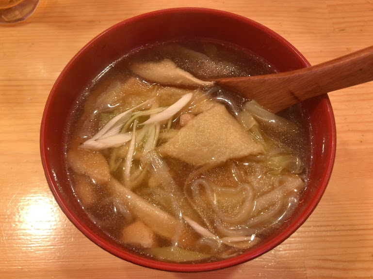 ねねのイチオシ、せんべい汁。これは八戸のソールフード、ぜひ食べてと。う~む。せんべい汁、もちろん知ってるが・・う~む。ほっこりと優しい、これは田舎の味。せんべいが汁でやわらかくふやけ、なんともいい感じ。当方この汁、大好き。確かに美味しだったな。