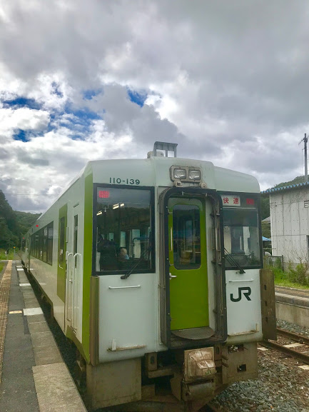 久しぶりだな。三陸を通る気動車。キハ110。典型的なローカル線。今日の宮古は曇り。天気の好転を期待したいが・・・。