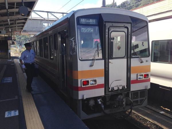 南小谷に到着。ここから糸魚川までの大糸線は、とてもローカル色が強くなる。たった1両の気動車だが、今日は満席。旅行客が多かった。立山黒部アルペンルートがらみの旅行客なのかな。中には結構、重装備な方もいた。団塊の世代で「北アルプスを目指そう!」という方、結構いるのかもな。学生の頃、山岳部だった方とか。そんなイメージを持ったな。