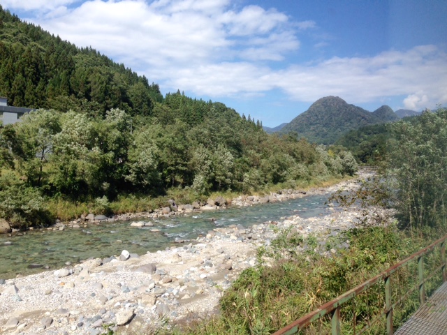 姫川。大雨が降ると暴れ川となり、大糸線を水没させ長期間不通にさせてしまった。そんな歴史もある川だが・・・この日の姫川は、本当にきれいだった。日差しのせいかな。とにかく、明るくてきれい、清々しさにびっくり。まぶしいくらいだったな。前回、真冬、雪の中で見た姫川とは、まるで印象が違う。驚いた。