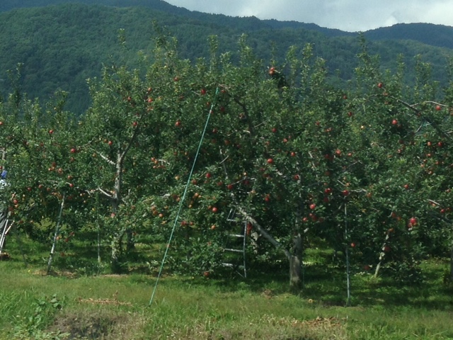 この時期の大糸線の車窓、このような赤いリンゴがなってる樹が見えるところがある。きれいだったな。
