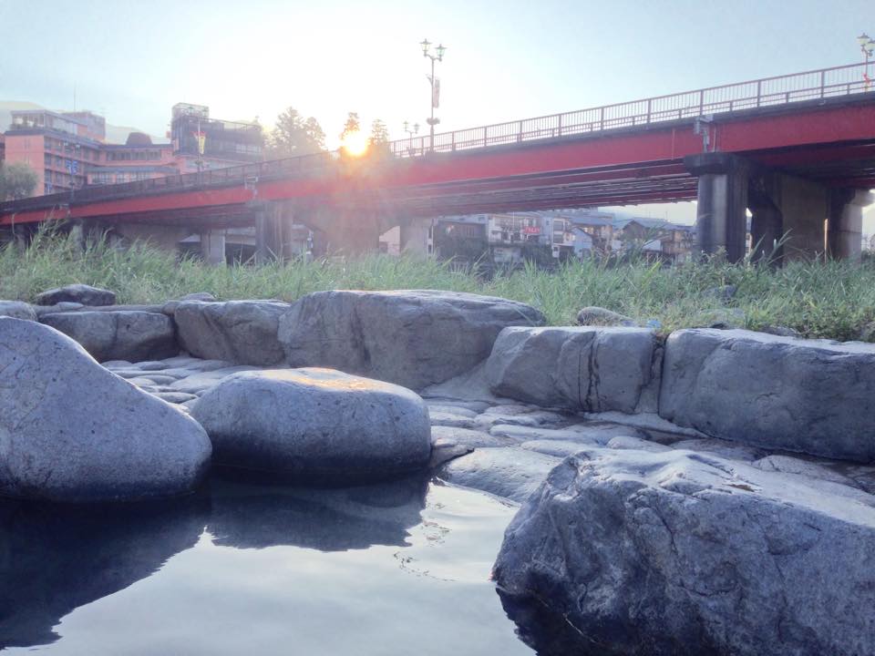 Google mapで噴泉池の場所を探す。そうか。飛騨川、下呂のいで湯大橋のたもとにあるのか。旅館から意外に近いな。思い立った当方、タオルを持って出かけてみた。写真を。