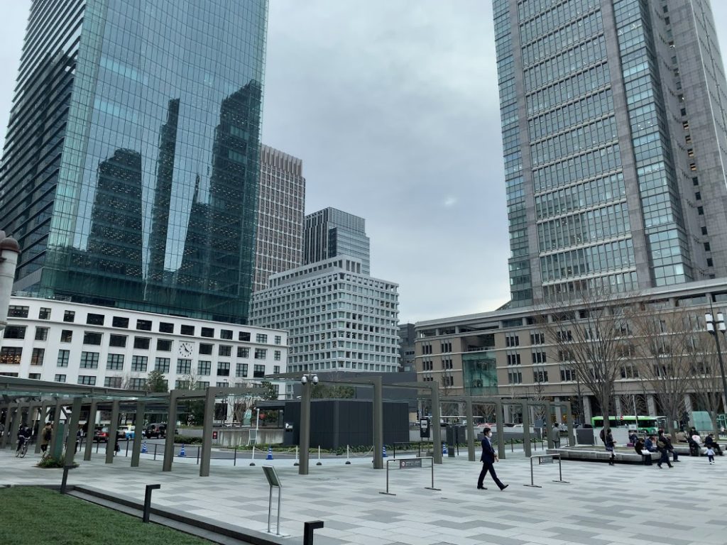 宿から丸の内を望むと、左にはKITTE、右には丸ビルが。既視感に満ちた眺めだが・・・いつもと違う、不思議な感じ。