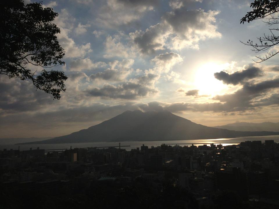 翌日の早朝、城山観光ホテルから見えた、桜島。竜ヶ水駅からの眺めとは、随分と異なるが・・・これはこれで、趣があるな。