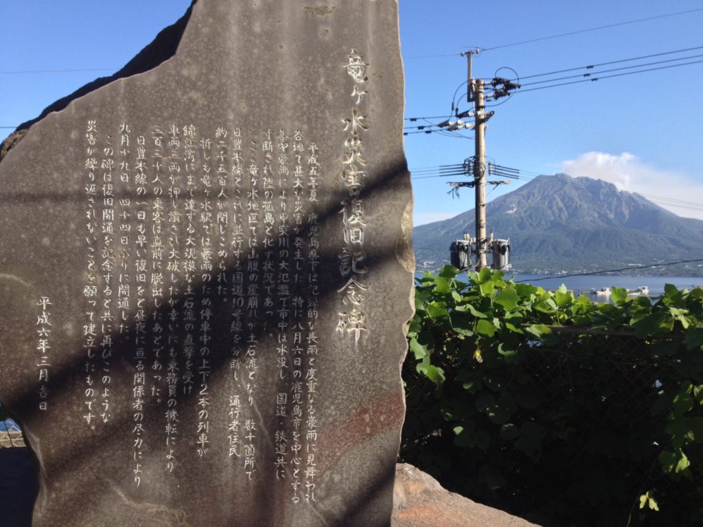 この駅、1993年8月6日の鹿児島集中豪雨で、壊滅的な打撃を受けたことで、有名。想像を絶する規模で発生した土石流により、駅に停車中の列車2車両が、駅もろとも全て、錦江湾に押し流されたんだとか・・・でも、JR九州の職員さん、実に機転の利いた判断・行動をしてくださり、犠牲者はほとんどでなかったそうな。