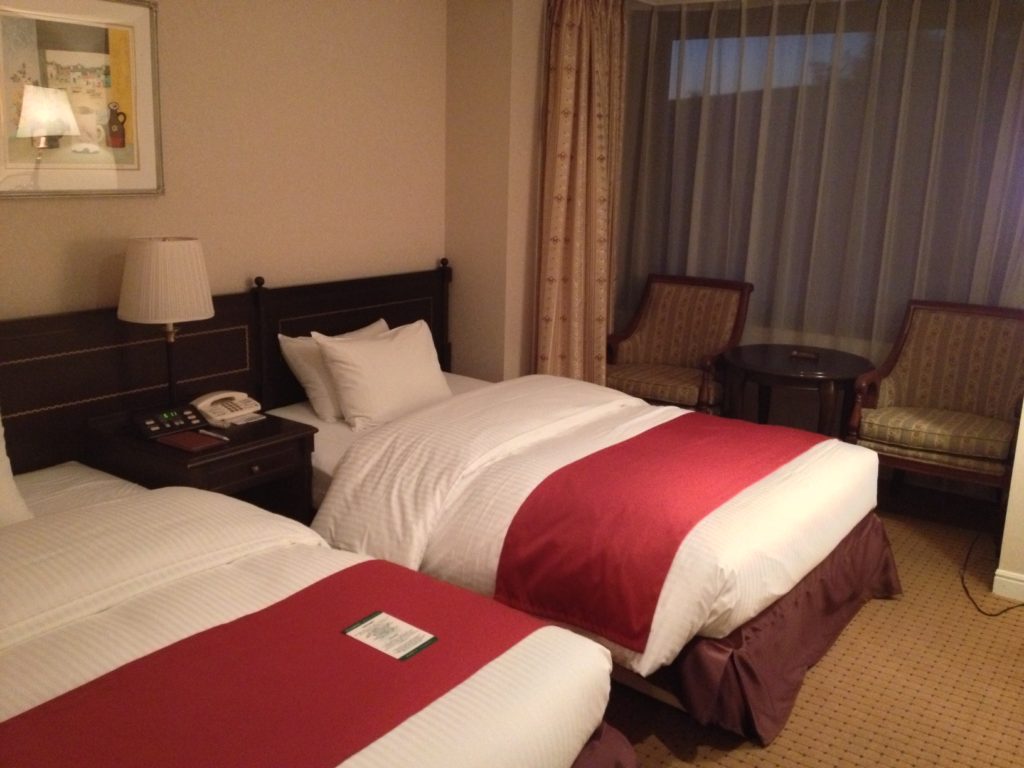 勉強会は無事終了。当方の鹿児島での定宿、城山観光ホテルに到着。ここは九州に出張②城山観光ホテルでも紹介しているが・・・鹿児島でイチオシのホテル。部屋も雰囲気があるよな。