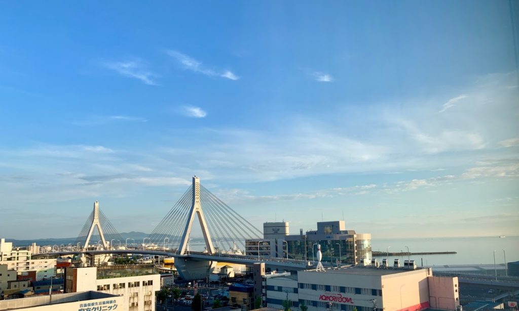 朝が来た!ホテルから青森港方面を望む。今日も天気がいいな。まずまずきれいな眺めなのだが、遮るものが少々・・・この部屋は最上階に位置しているが、それでも9F。これが新潟へ旅に②ホテル日航新潟ような高層ホテルで部屋が30F近くに位置していれば、とんでもなく綺麗な津軽湾が望めるんだろうが・・・まあ、これはこれでいいよな。