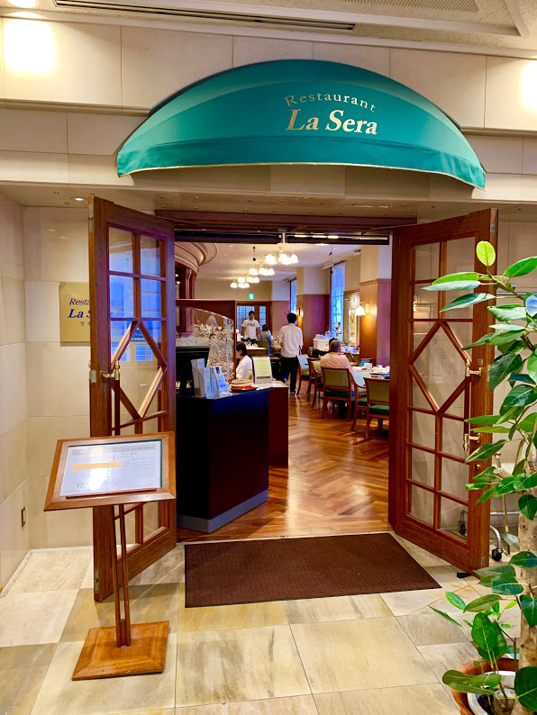 朝食ビュフェへ。La Seraという名のレストランの入り口、いい感じ。期待が高まる…