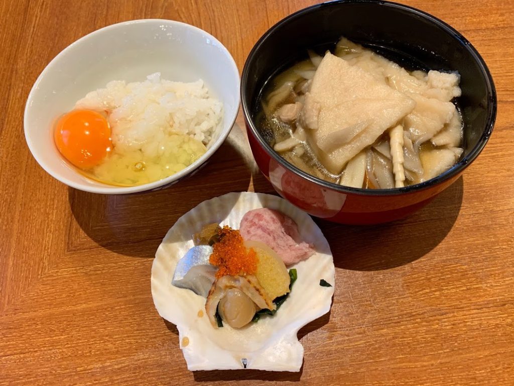 まずは、「とにかく食べたみたい」と感じたものだけを。せんべい汁、ほっこりと胃にやさしい。卵かけご飯も濃厚でおいしく、ほたて貝盛りとある地のもの魚介もご飯によく合う・・・和食っていいな。しみじみ美味しだった。
