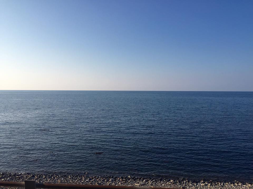 真正面を撮るとこう。先には韓国があるが…こんなに快晴でも、さすがにそれは見えない。地球が丸いんだなぁと感じる瞬間だな。