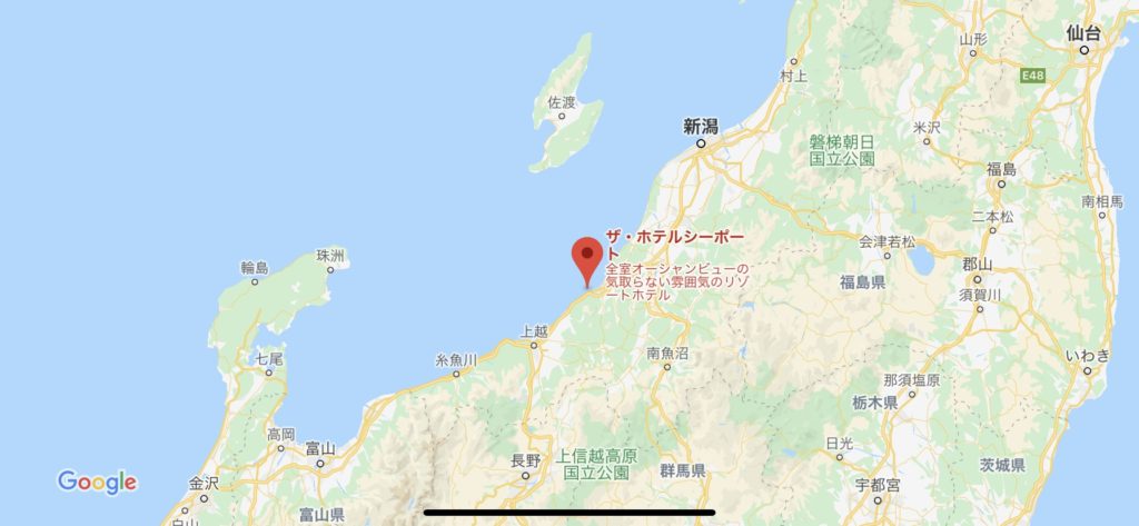 とにかく、日本海がきれい。ちなみに右上の高台があるのが、当方の今日の宿、ザ・ホテルシーポート。