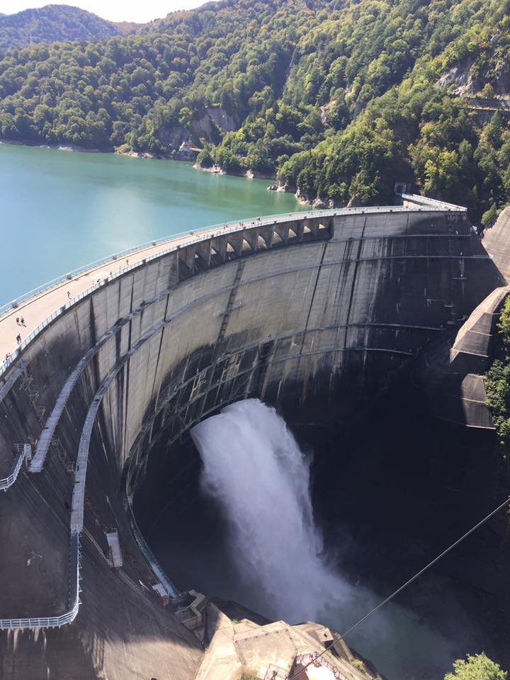 黒四ダム!なんというスケール! でかすぎて、写真撮るのが難しい。でも恐ろしく綺麗。感動…と、戦後、大阪が復興できたのは、関西電力の、このダム作ろうと言う決断ゆえ。旅行前に映画、「黒部の太陽」を見て、そのことがよくわかった。