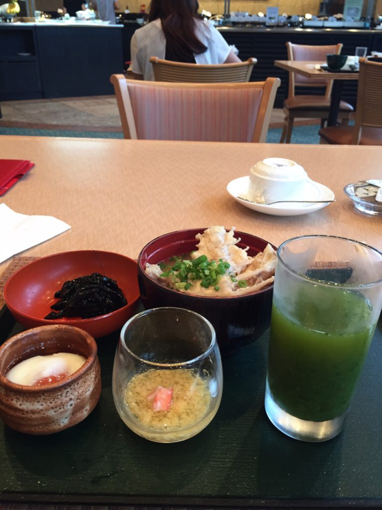 右側のジュースは、SFC会員様専用の特別スムージー・ジュースと。少し前から、メンバーに特別にお出しするようになったと。いただいたら確かに、ジュースの中に野菜のつぶつぶ、歯ごたえがあって何とも言えず美味。さすがにホテル側から、SFC会員様専用の特別メニューですんでと、強調するだけのことはあるな。