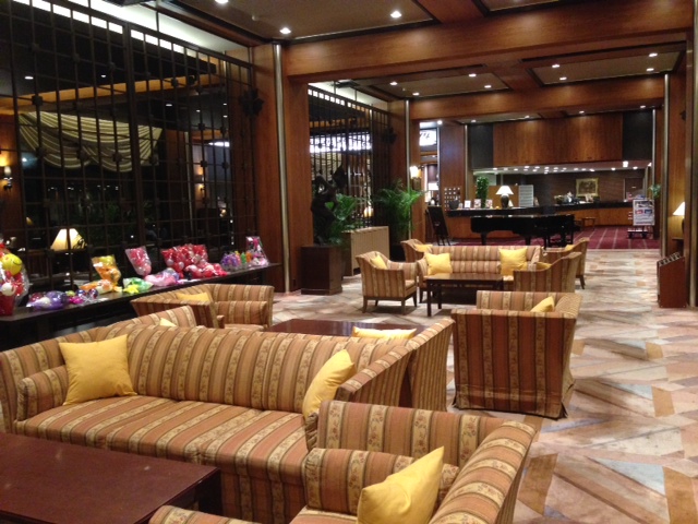 ホテルのロビー。ソファこそカラフルだが、ロビー自体はまんま、ホテルオークラのムード。悪くないな。