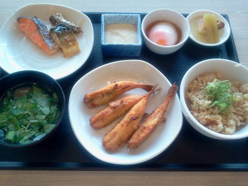 一夜明けて・・・ドーミーインPREMIUM下関で朝餉を。さすがに下関らしく、ビュフェのメニューにふぐの唐揚げとふぐご飯があった。こういうの、嬉しいよな。