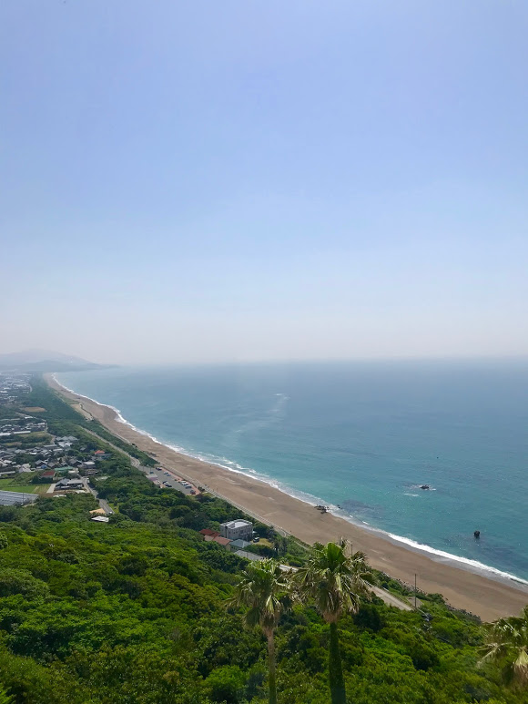 部屋の東側に机があり、渥美半島と遠州灘を望む。少し霞んではいるが、綺麗だよな。