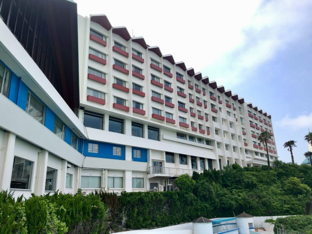 海側から撮ったホテル。悪くないムードだよな。