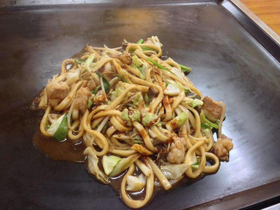 佐用には初めて降り立つが・・・ここはホルモンうどんが有名らしい。駅近のお好み焼き・うどん店を探して入り、ホルモンうどんを注文。お好み焼き用の鉄板で焼いてもらった。小腹も空いていたしな。旨かった。モツの甘辛の味が、うどんによく沁みてた。