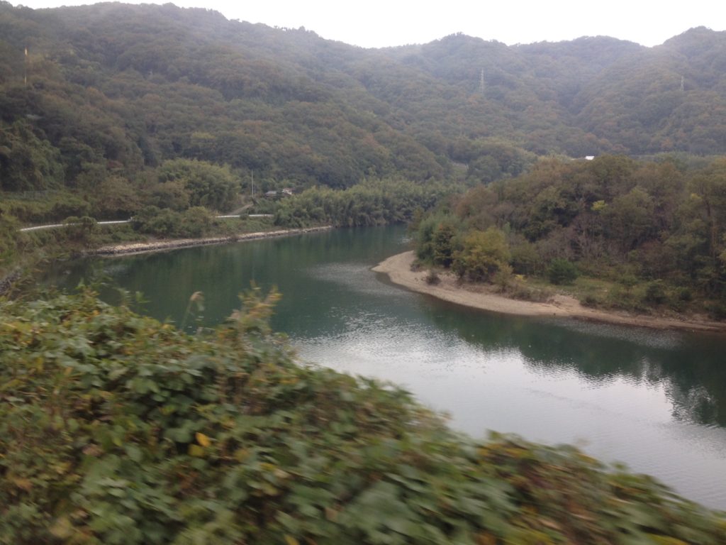 津山線、津山~佐用は、吉野川に沿って走る区間が比較的多い。車窓、きれいだよな。