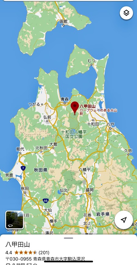 青森と八甲田の位置関係を。青森市街・青森市街から南下、山の中に入っていく感じだな。