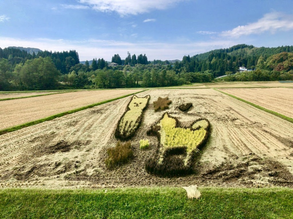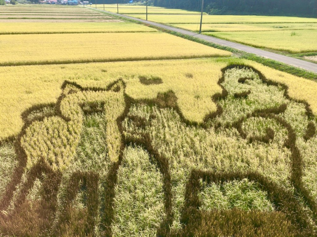 ここは秋田犬の里らしい。で、これは「田んぼアート」というらしい。綺麗にできるもんだな。