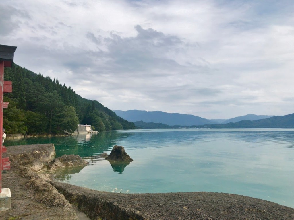 田沢湖。きれいだよな。天気がちょっと良くないせいか、十和田湖とはまた違う印象だが、なんともいい感じ。このまま宿へ向かいます。