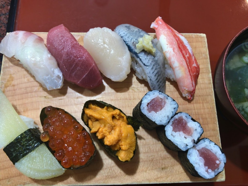 秋田駅に着いた。お昼だが・・鮨を。最高・・・市民市場の中にあるいちばん寿司へ。ここは魚が旨い。まずはランチのセット。ウニはまったり最高!意外にも、イワシに脂がのってる。旨しな。