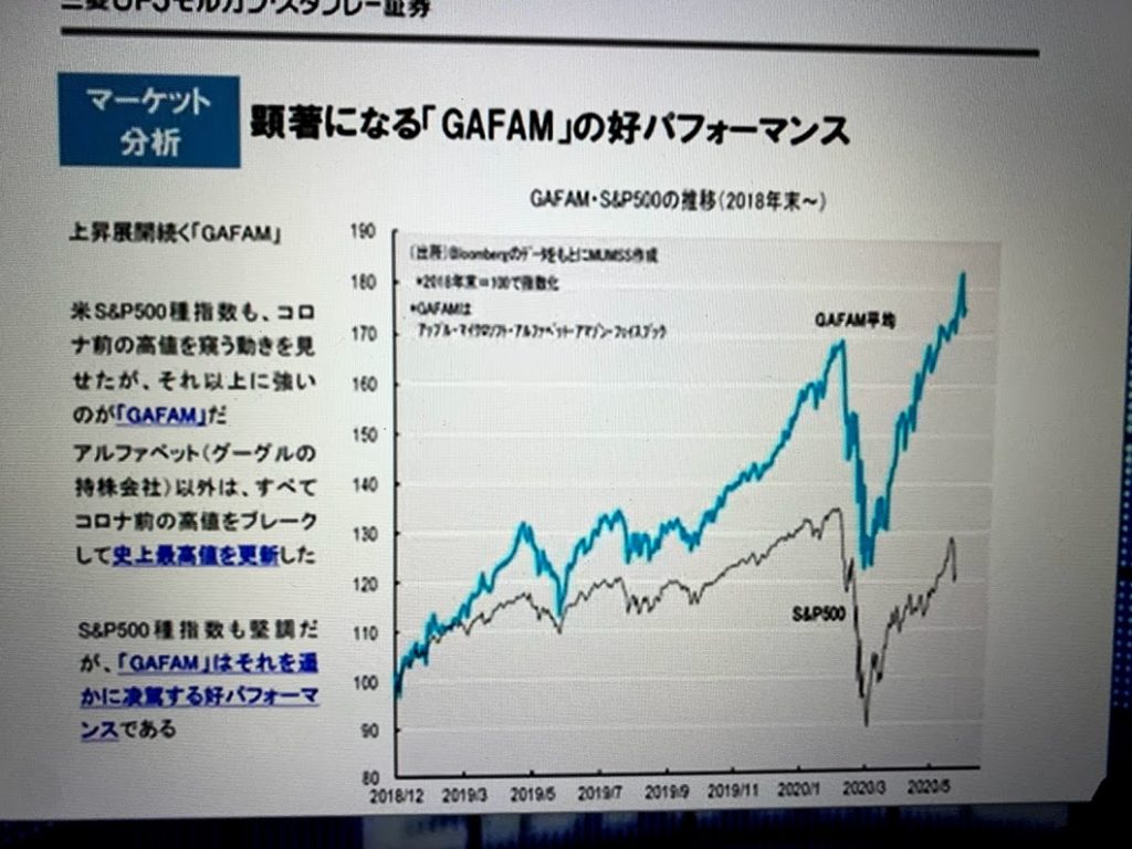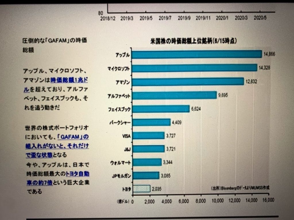 この表は価値がある。世界の株式ポートでは、GAFAMがないと話にならない。その通りですね。う~む。トヨタの規模の小ささと言ったら・・・