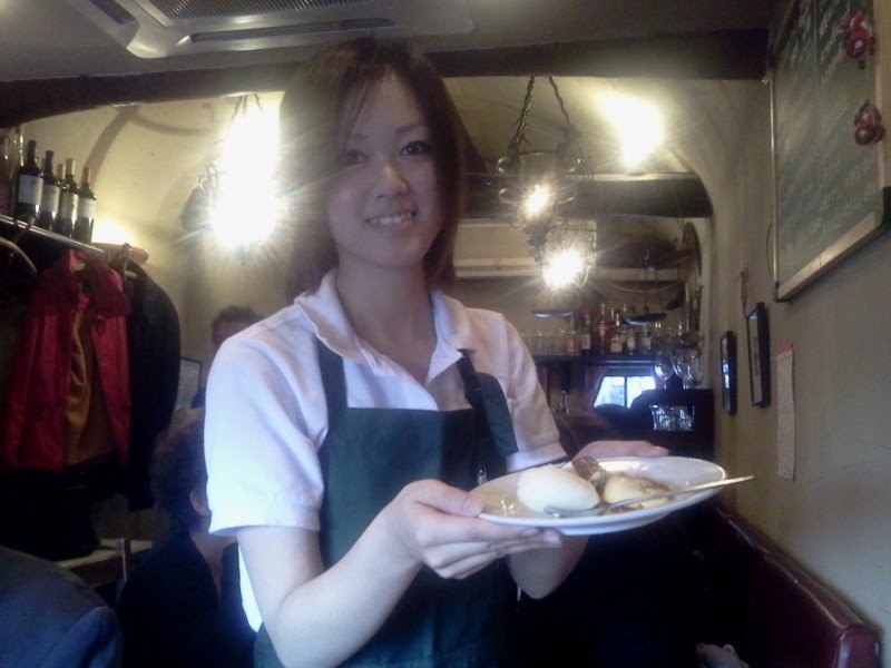 洋ナシのシャーベットとプリン。またもウエイトレスさん中心で、料理がよくわからないと?(笑)