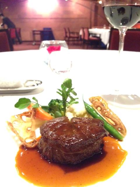 牛フィレ肉のステーキマデラ酒のソース。最高だな。やはり、赤とよく合う。