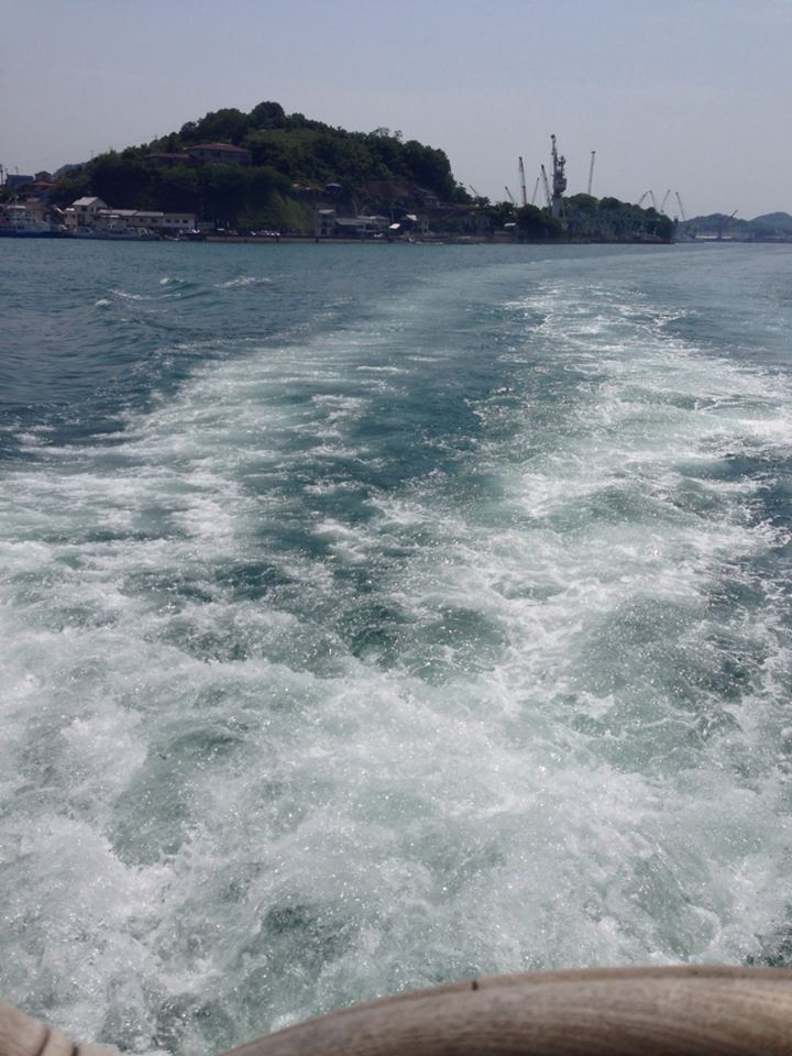船の最後尾に陣取り、尾道を後にする。瀬戸内海を眺める。清々しいし潮の香りもする。瀬戸内海の揺れの少ない船の旅、最高だな。