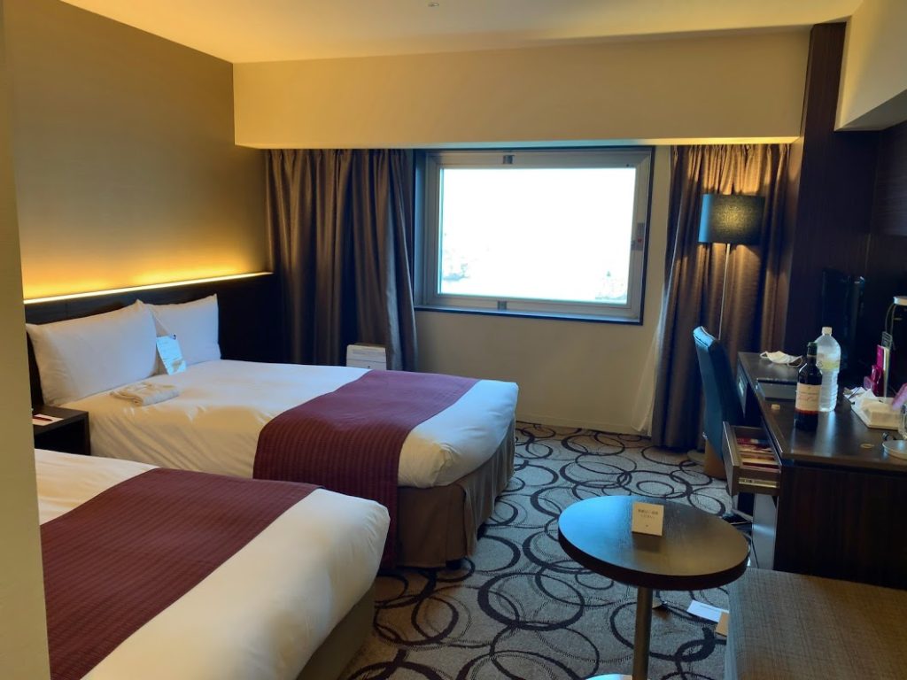 ANAクラウンプラザ釧路に到着し、チェックイン。ツインのシングルユースだが、よりステータスの高い部屋にアップグレードしてくれた。いい感じ。ちょっと気持ちが上向きに。