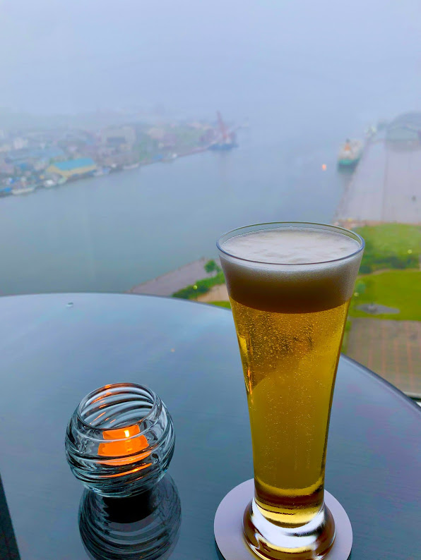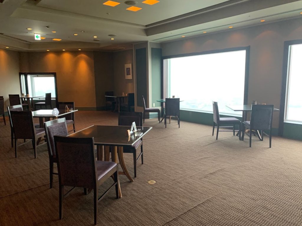 SFCのウェルカムドリンクをいただきに、最上階にあるトップラウンジ「ビギンズ」に。いい感じだな。