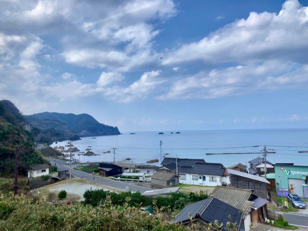 ついに日本海側に出た!きれいだよな。最寄り駅は山陰本線の竹野。