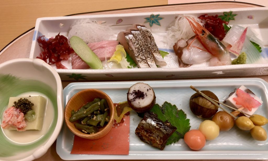 今回の夕食はレストランではなく部屋食だった。料理は全部で7品出してもらったが、仲居さんが一品一品、その都度持ってきてくれて。「いかがですか?おいしいですか?」と声をかけてくれる。嬉しかったな。