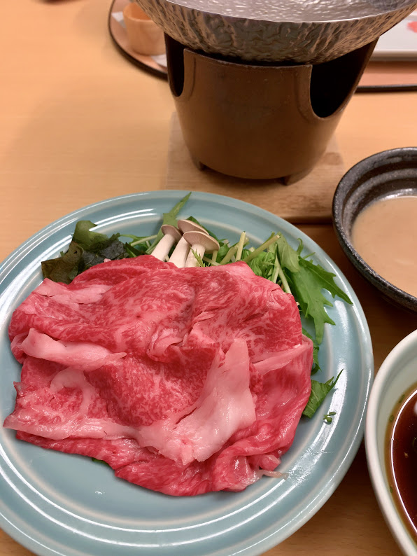 鳥取黒毛和牛のしゃぶしゃぶ。事実上、これが今回のメインかな。ごまだれかポン酢で召し上がれと。うーむ。とろけるな…身も心も…