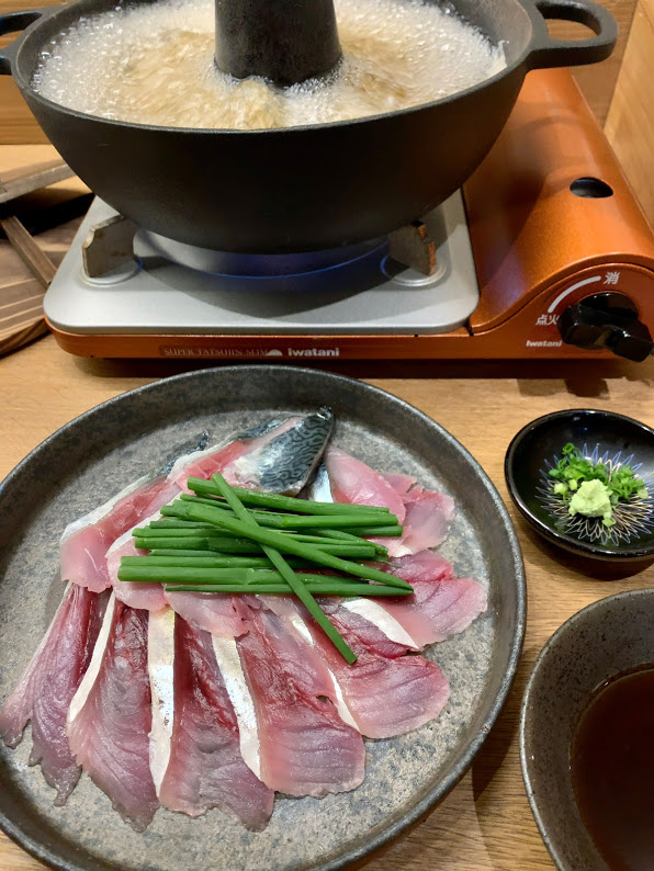 しゃぶしゃぶの汁を少しすくっていただいてみると、かつお出汁に鯖の香りが強く出ていて、鯖が存在感を主張しているようだった。う~む。あんまり美味しいので、汁を何杯かいただいたら、汁の温度が低くなるごと、鯖の風味が強くなっていた。