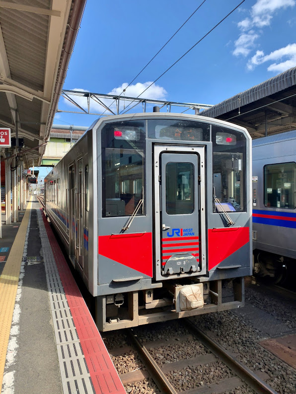 米子駅にて。またも京成電鉄の車両に似た鈍行の気動車1両、倉吉行きが。これに乗って終点まで。
