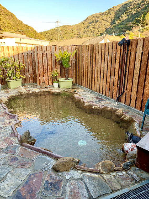 宿の部屋。HPには「全室離れ♪和室6畳+洋室6畳部屋風呂あり。大浴場とは別に、お部屋に五右衛門式(温泉)をご用意しております」とある。こんな客室が6部屋だけある宿。この写真で雰囲気が伝われば嬉しいが・・・ちなみにこの日は、当方と女性二人組のみの滞在だった。平日の火曜日だったからだろうな。やはり期待が高まる。