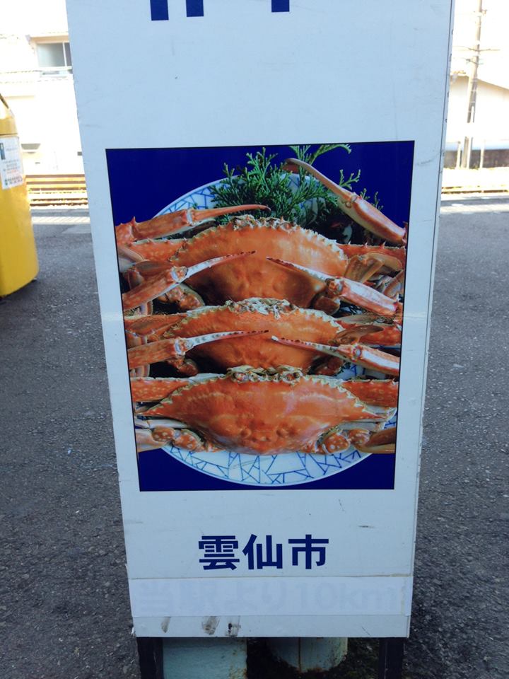 長崎本線で空港のある大村の手前、諫早まで戻ってきた。諫早では停車時間が長ったのでホームに降りてみたら、こんな写真が。「たいらガネ」と呼ばれる、有明海で採れる良質のワタリ蟹。雲仙・長崎に出張旅①島原鉄道に乗ってで食べているが・・・確かに美味しだった。たいらガネ、やはり雲仙市の名物だったんだな。