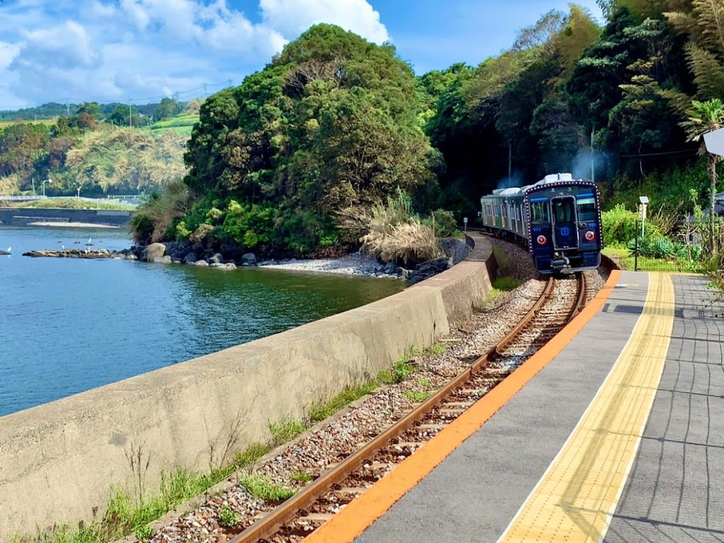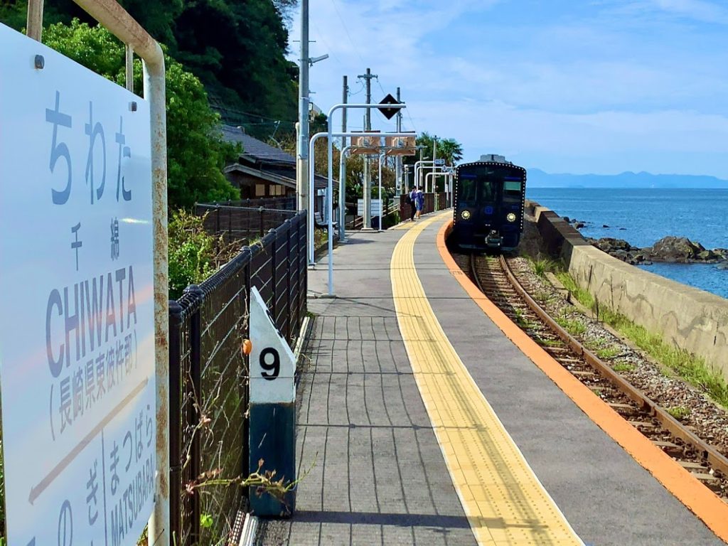 ここ千綿駅は、九州で最も有名な海の見える駅でしょう。青春18きっぷのポスターにも登場したそのホームからは、柵一つ遮るものなく海を望むことができます。目の前に広がるのは、長崎県の真ん中にぽっかりと空いた内海の大村湾。駅舎も昭和の面影を残す木造駅舎で、木枠の窓越しに見る穏やかな海は、この上ない郷愁を誘います。長崎駅から普通列車で約1時間半。長崎空港からバスと普通列車(大村駅または彼杵駅で乗換)で約1時間。本数は1〜2時間に1本。