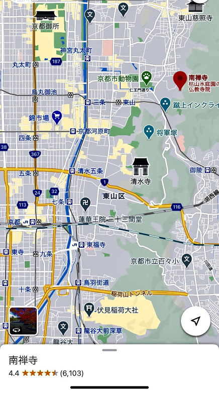 位置関係を。南禅寺は京都地下鉄南北線の蹴上(けあげ)から歩いてくことが出来るが。その蹴上(けあげ)駅への帰り道。琵琶湖疎水に遭遇。琵琶湖から京都まで水を引く、そのアイデアに度肝を抜かれるな。物凄い勢いで水が流れていた。琵琶湖疎水はあらためて。予習したうえでまた訪れたいな。