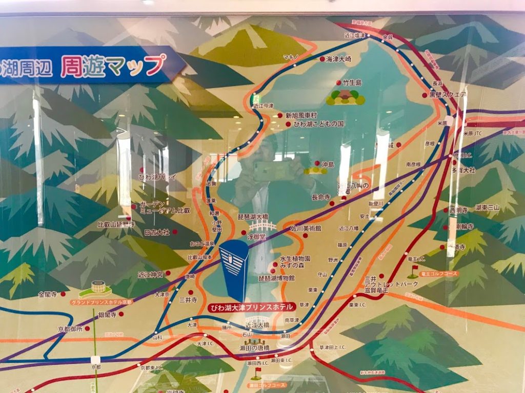 ホテルの位置関係を示す地図。琵琶湖の中でも、西南の端。限りなく大津・京都・大阪に近いことがわかる。